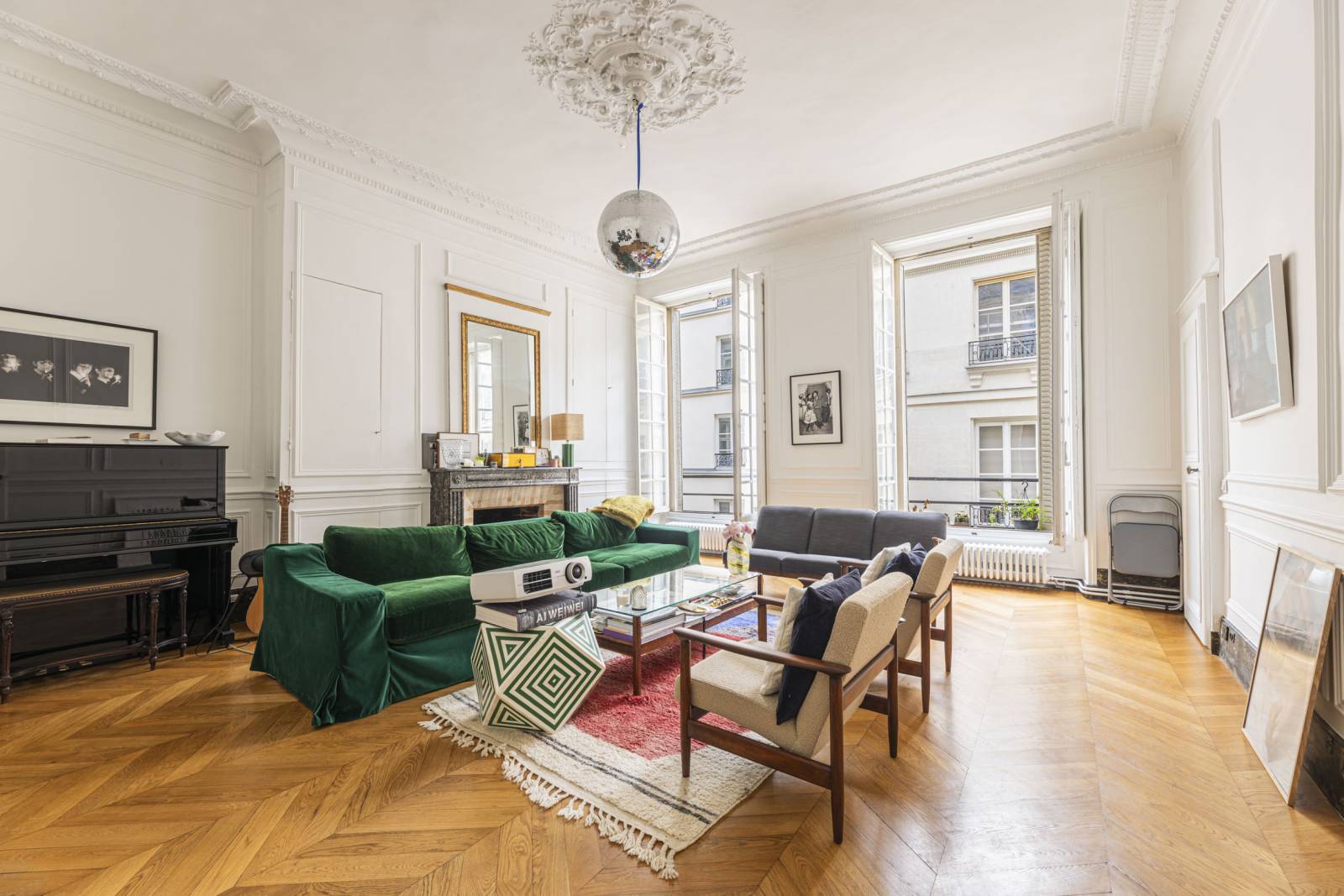 Appartement d’exception dans un Hôtel Particulier du XVIIe siècle, avec 3,55 m de hauteur sous plafond, éléments d’époque conservés et vue sur jardin, à deux pas de la Seine et du métro Odéon.