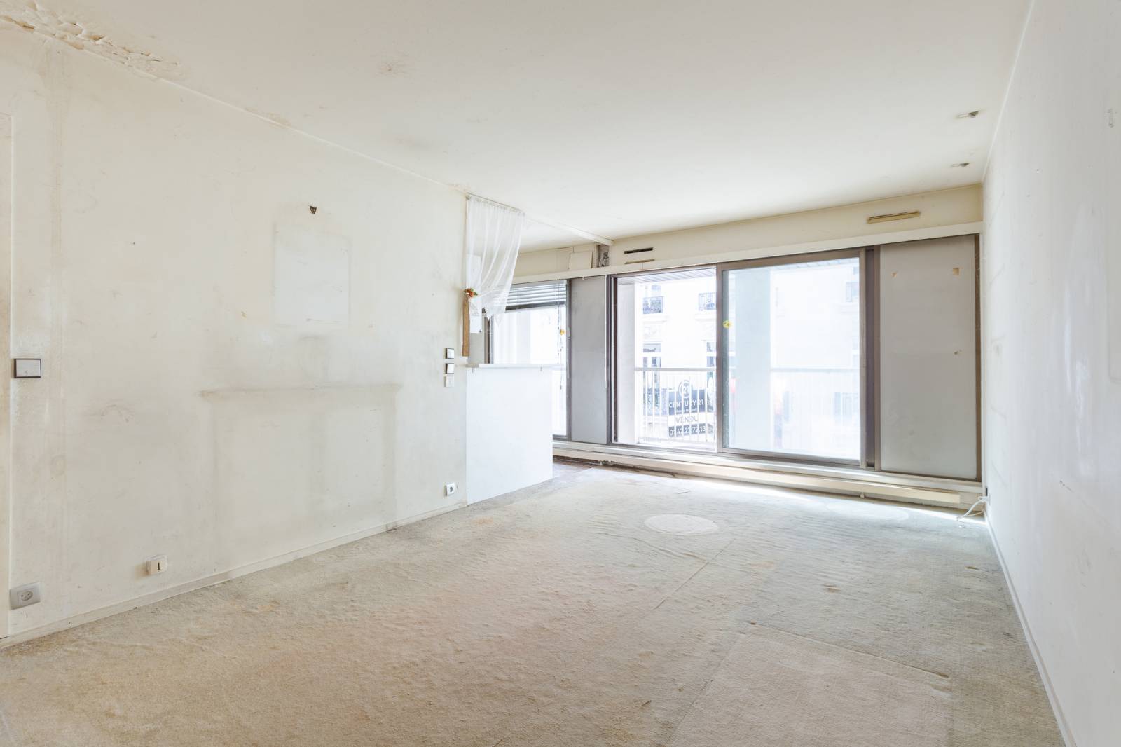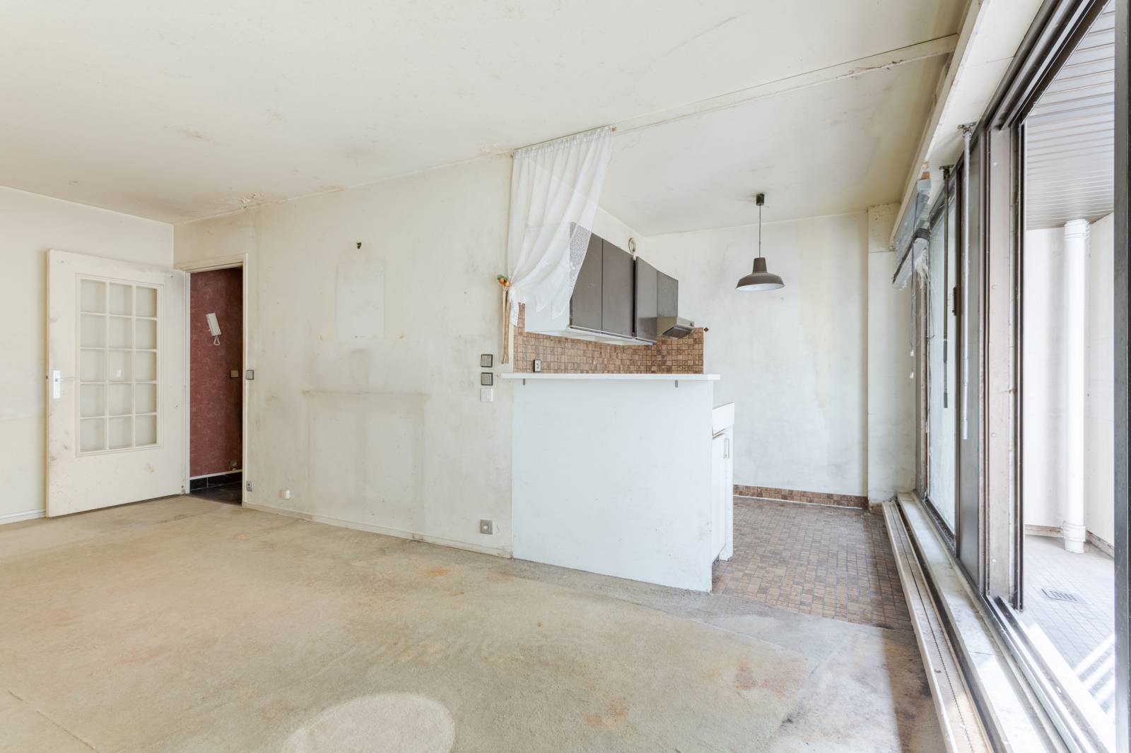 Appartement 2/3 pièces entièrement à rénover situé au 3ème étage avec ascenseur d'un immeuble semi-récent de standing avec gardien. Le bien est composé d'une entrée, d'un séjour avec cuisine ouverte, de deux salles de bains dont une avec wc, d'une chambre avec un coin bureau et de deux balcons.