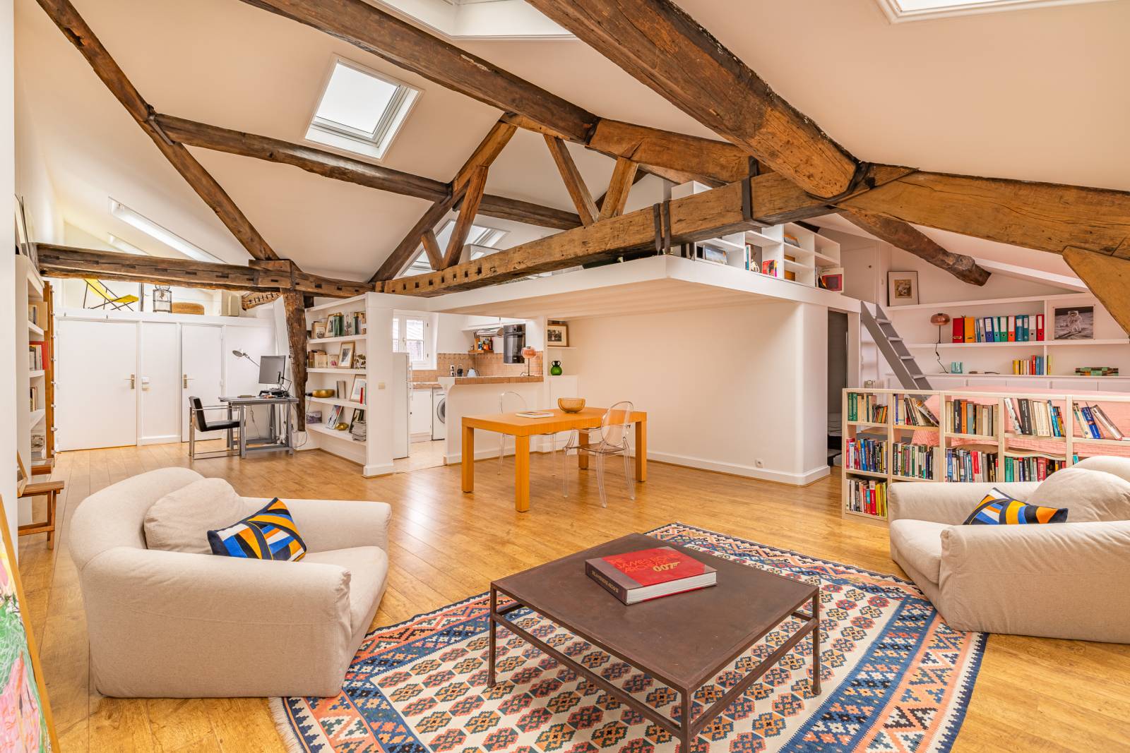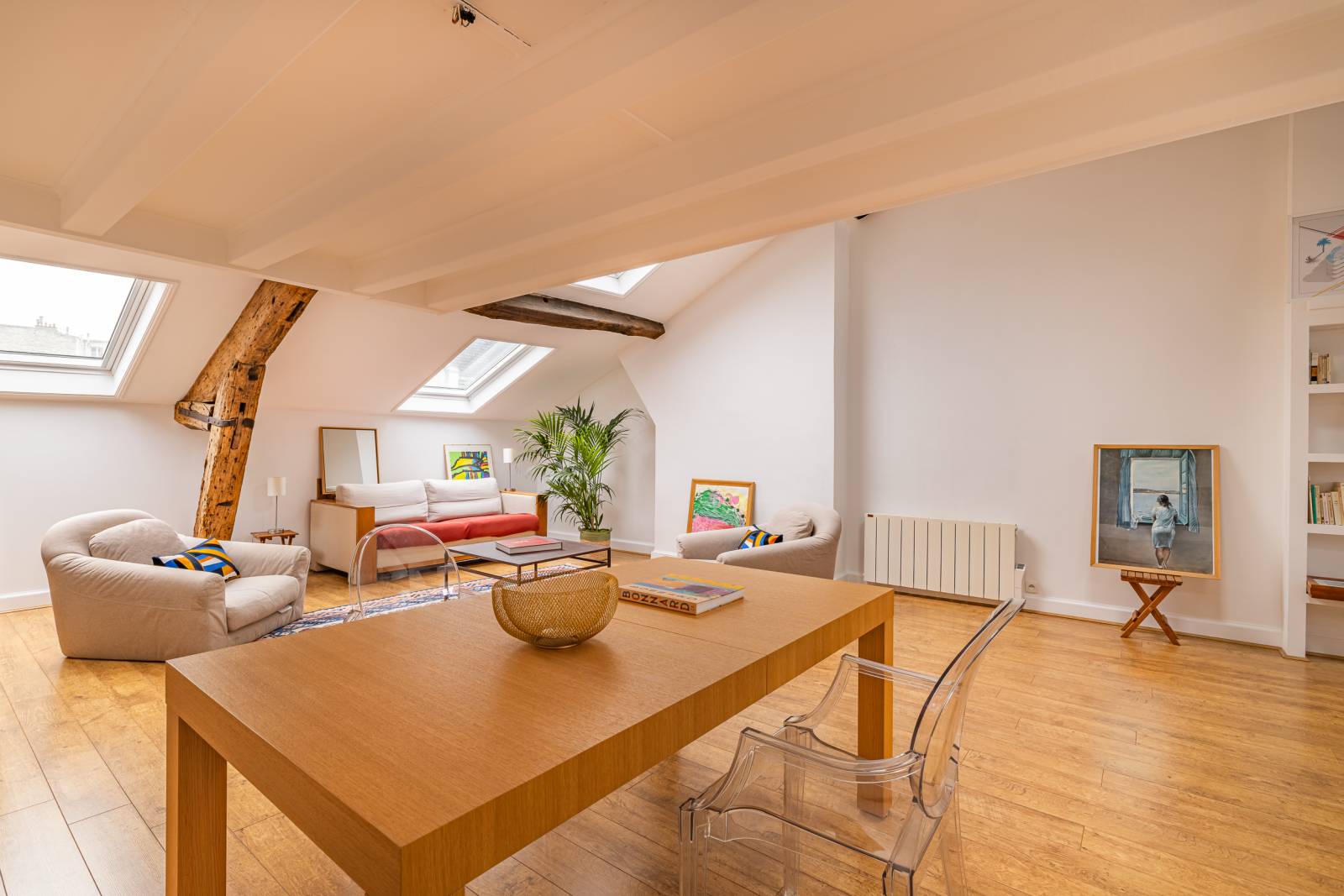 Dans un élégant Hôtel Particulier du 18ᵉ siècle, sécurisé et avec gardienne, situé rue de l'Université, à deux pas du Musée d'Orsay et des Quais de Seine, découvrez cet appartement style loft niché au 3ème et dernier étage (ascenseur jusqu'au 2ème étage).